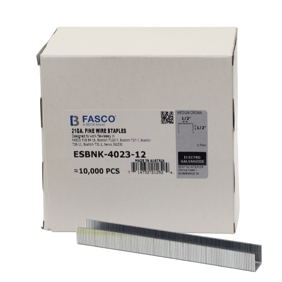 Staple Length: 1/2"; Crown Width: 1/2"; Box Qty: 10,000. Mfg. #: SBNK4023 1/2" (Bostich-Type)