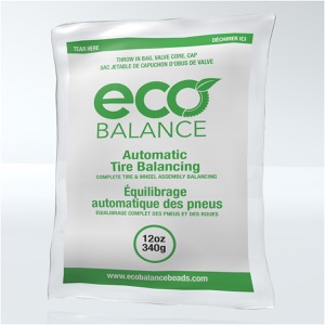 EcoBalance beads work by the beads being distributed in the tire as it begins to roll, through centrifugal force. As the centrifugal force increases, the heavy spot pulls up and down on the suspension, making the beads move in the opposite direction of the downward and upward motion, through inertia. The beads continue to migrate until the complete wheel assembly is balanced.